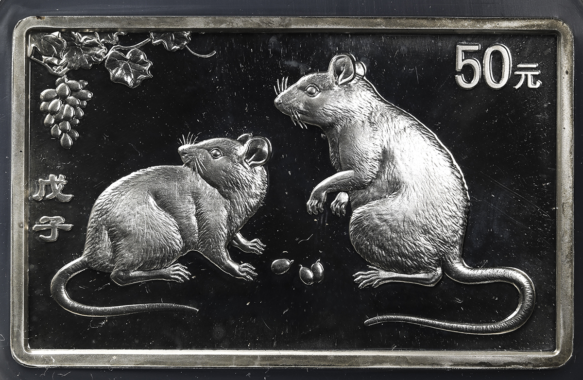 中华人民共和国 People‘s Republic of China 50元(Yuan) 2008 NGC-PF66 Ultra Cameo 保証书付 オリジナ儿ケース付 with original case Proof。KM-1834 子年 长方形型 5オンス(5Oz)银货 制造1888枚, NGC-PF66 Ultra Cameo 保証书付 オリジナ儿ケース付 with original case ...