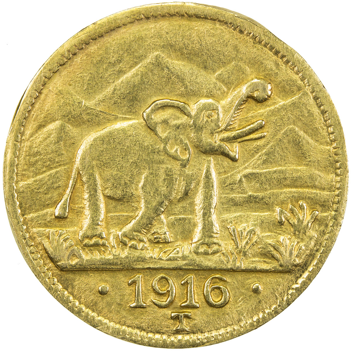 World Coins - Africa,GERMAN EAST AFRICA: Wilhelm II, 1888-1918, AV 15 rupien, 1916-T, KM-16, elephant right , Imperial eagle with shield on breast, right arabesque ends below the first A of OSTAFRIKA, possible mount removal, EF. Gold bullion from the Ki ...