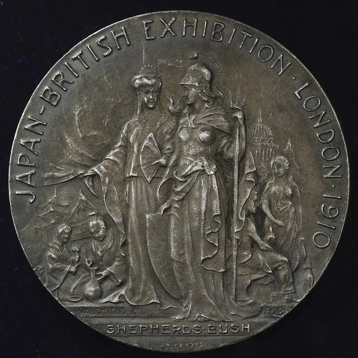 GREAT BRITAIN George V ジョージ5世(1910~36) AR Medal 1910 オリジナ儿ケース付 with original case scratch スクラッチあり AU~UNC。日英博覧会 银メダ儿 ブリタニア之天照/骑士之侍 53.65g エドワード8世の急逝により开催が危ぶまれたが时の外务大臣の小村寿太郎の尽力に ...