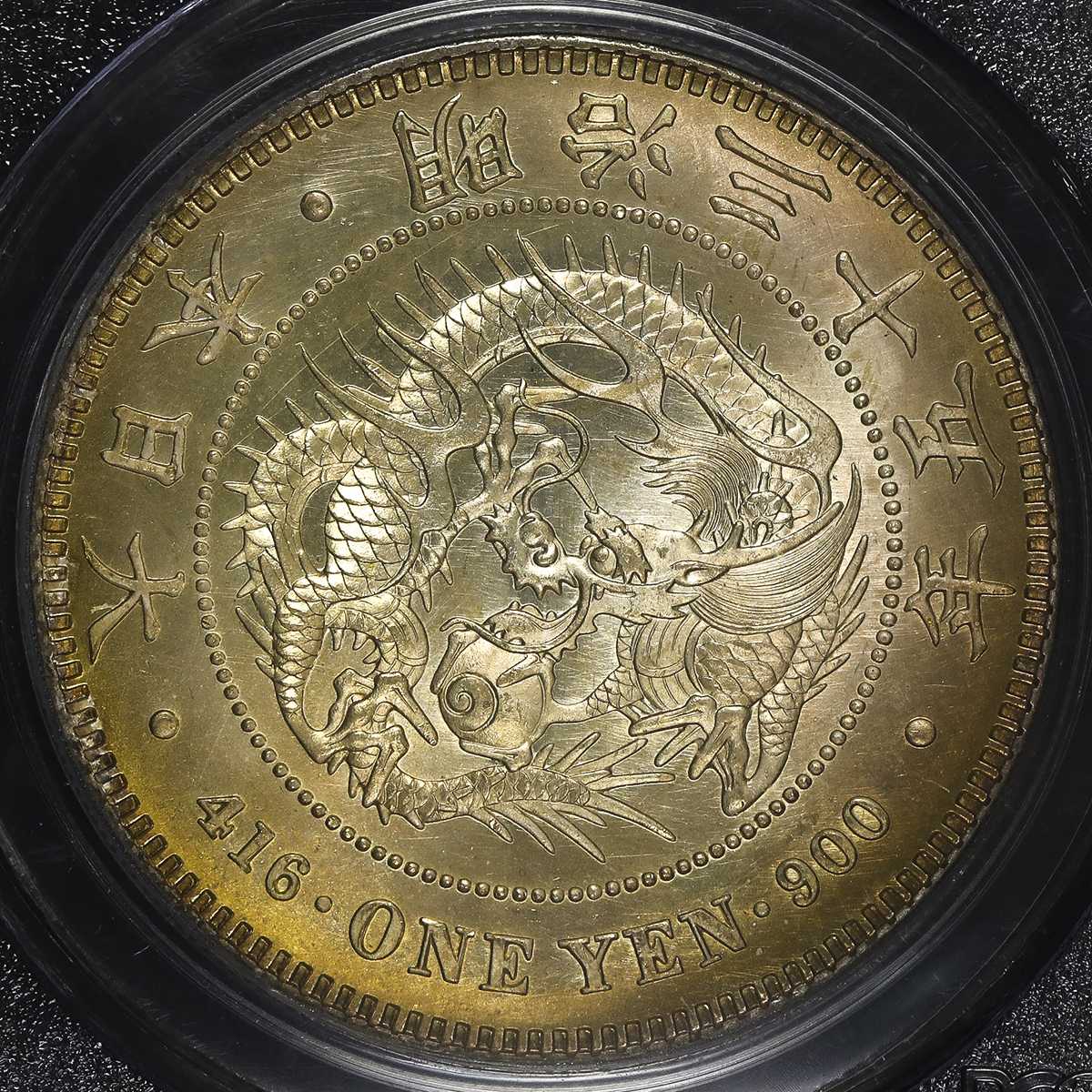 日本 新一圆银货(小型) New type 1Yen (Small size) 明治35年(1902) PCGS-MS63 トーン UNC。JNDA01-10A KM-YA25.3 トーン UNC