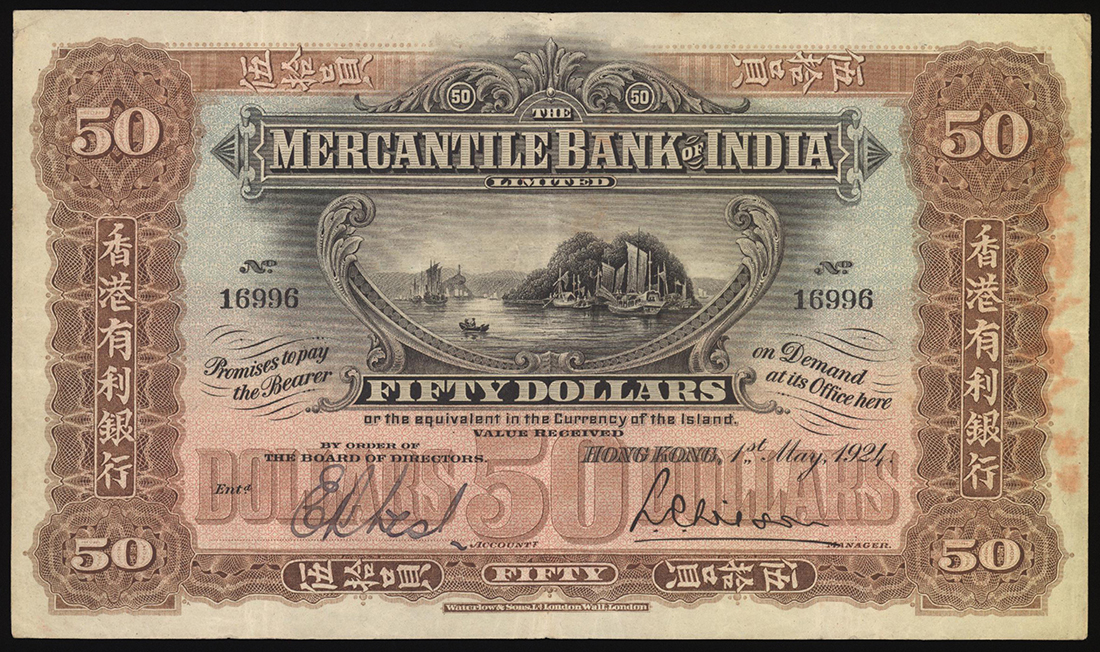 1890年香港上海汇丰银行壹圆,香港地名,有修补,七成新