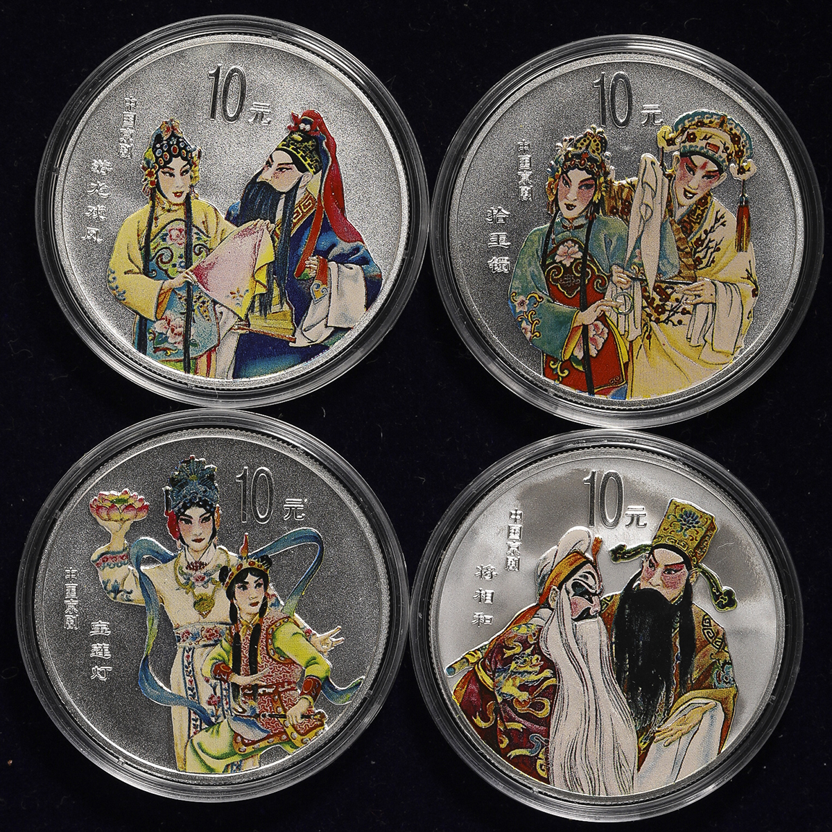 中华人民共和国 People‘s Republic of China Proof Set 2001 保証书付 オリジナ儿ケース付 with original case。KM-1398~1401 中国京剧芸术记念币 第3组 カラー1オンス(1Oz)银货4种セット,保証书付 オリジナ儿ケース付 with original case ...