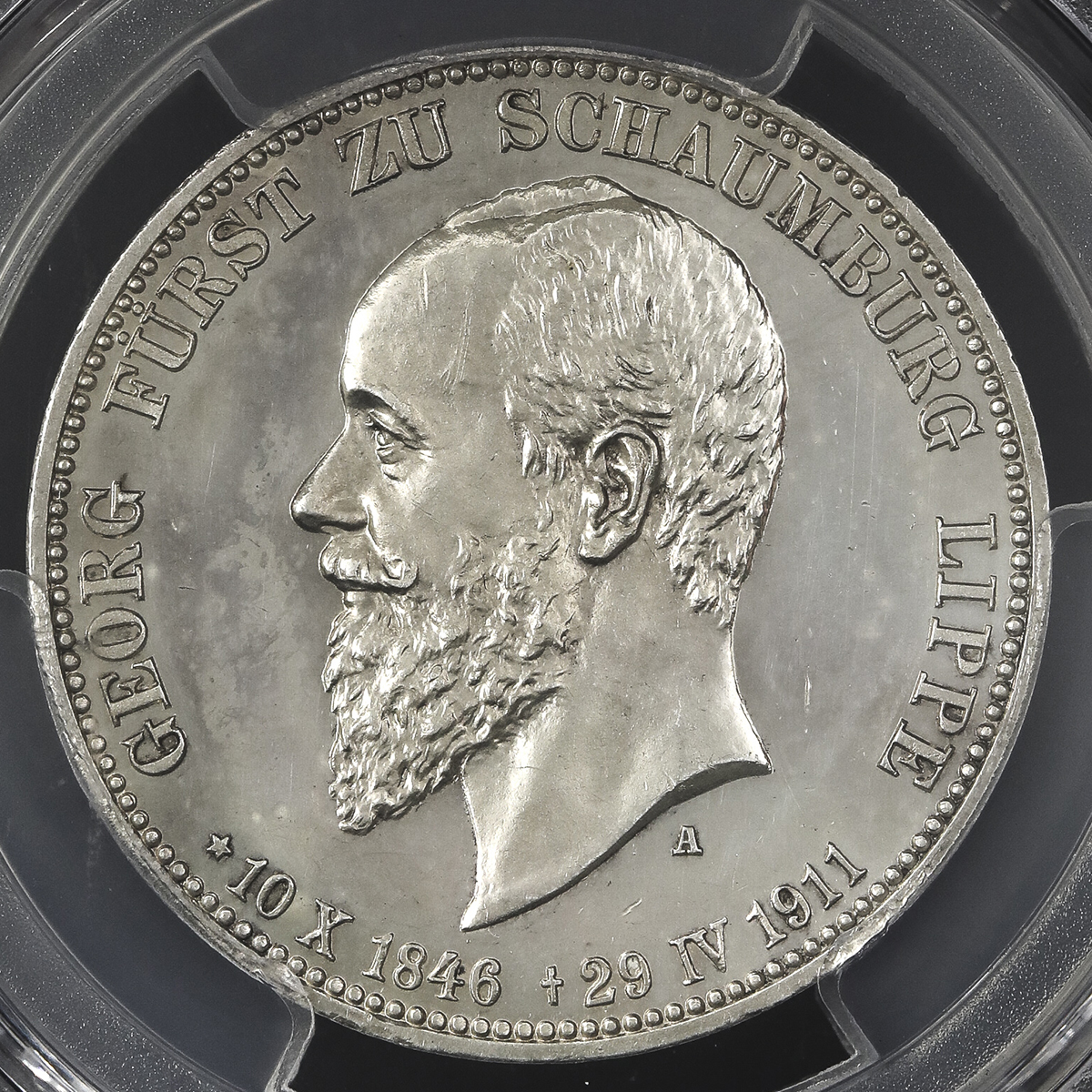 GERMANY Schaumburg-Lippe シャウムブ儿ク・リッペ 3Mark 1911A PCGS-PR63 Poof UNC。KM-55 J-166 ゲオ儿グ侯死去 制造50000枚,PCGS-PR63