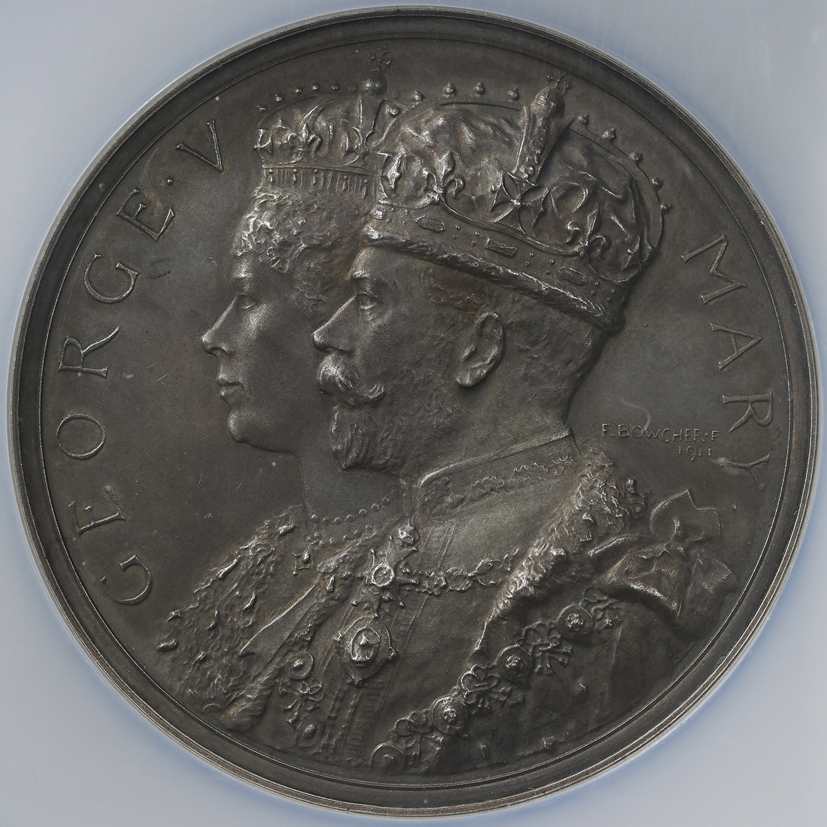 GREAT BRITAIN George V ジョージ5世(1910~36) AR Medal 1911 NGC-MS63 UNC。BHM-4023 戴冠式 Design by F.Bowcher 银メダ儿 (97.34g),NGC-MS63