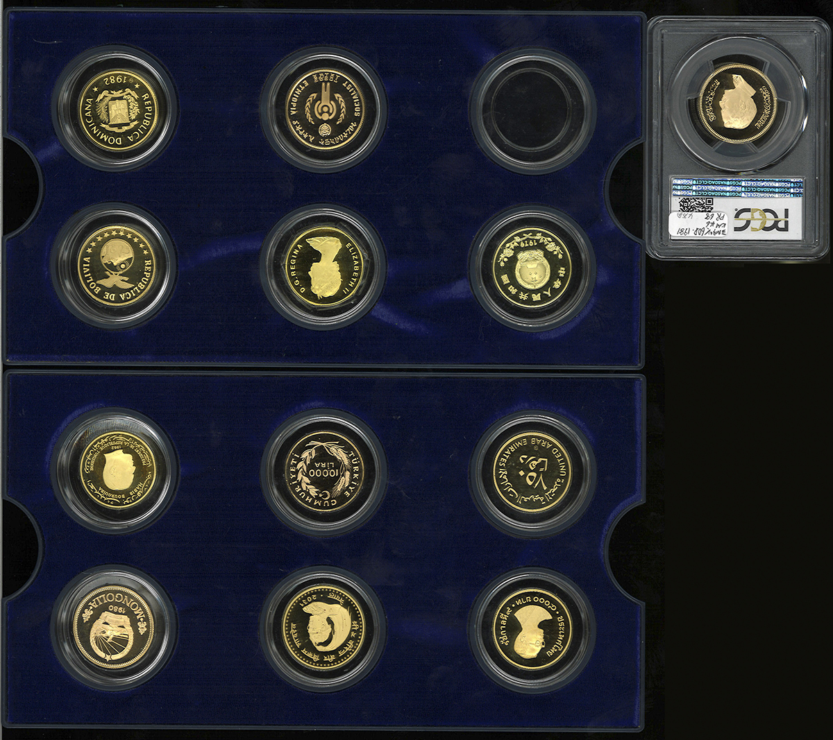 Lot of Asia&African coins アジア・アフリカのコイン UNICEF国际児童年Proof Set 1979~82 オリジナ儿ケース付 with original case Proof。ボリビア 400Pesos Bolivianos KM-199/カナダ 100Dollars 1979 KM-126/中华人民共和国 450元 1979 KM-9/ドミニカ共和国 1982 KM-58 制 ...