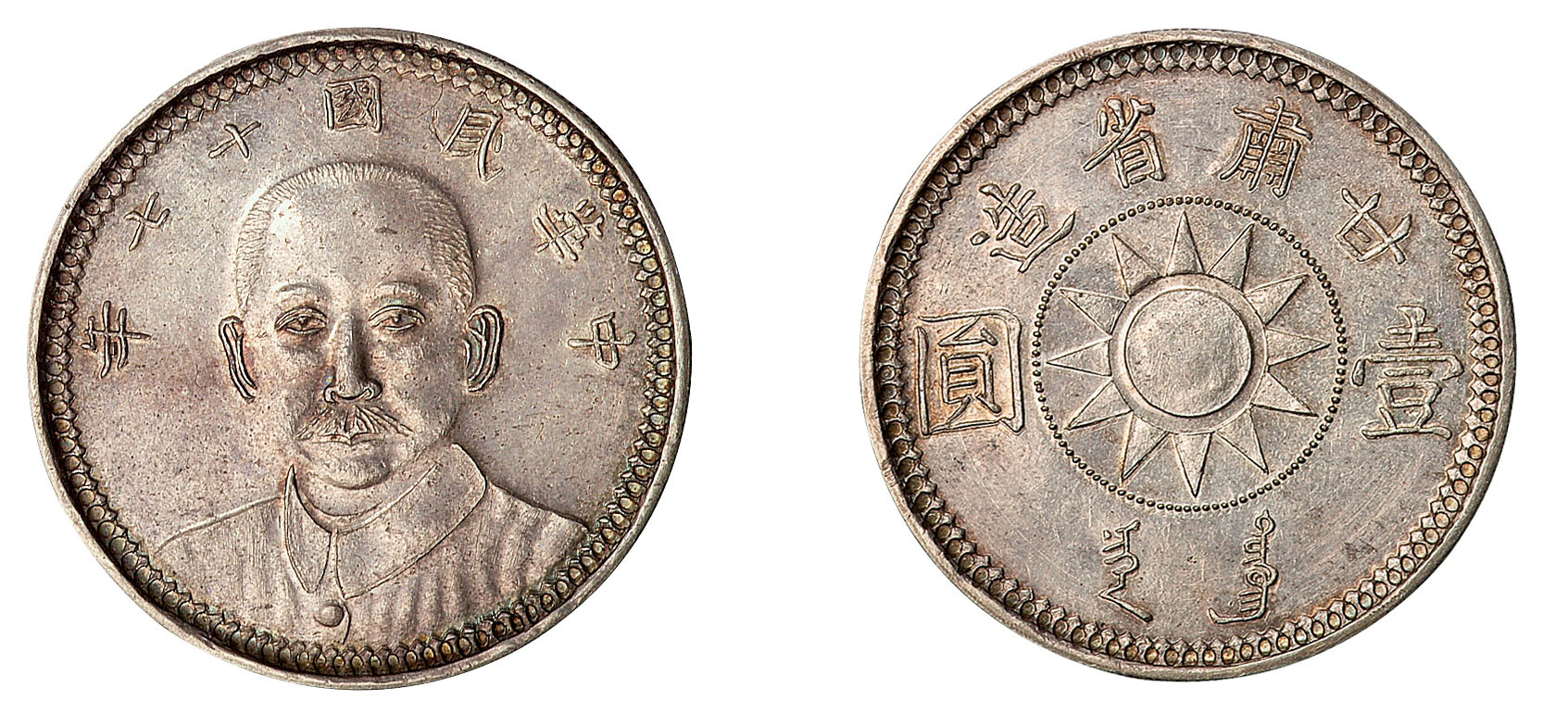 民国十七年孙中山像甘肃省造壹圆臆造银币一枚,参考品
