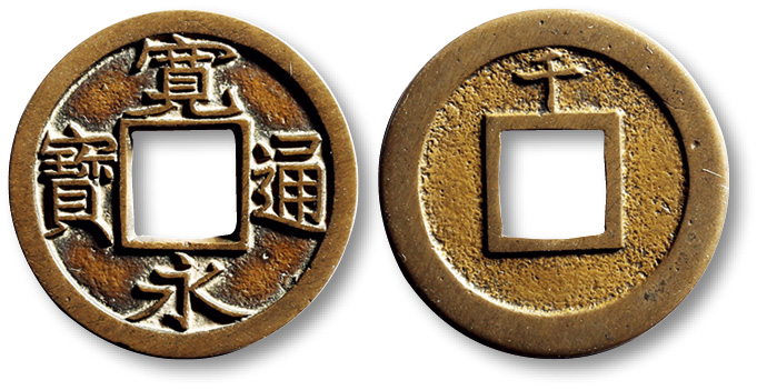 日本“宽永通宝”背上“千”母钱一枚,直径:22.9mm,极美品