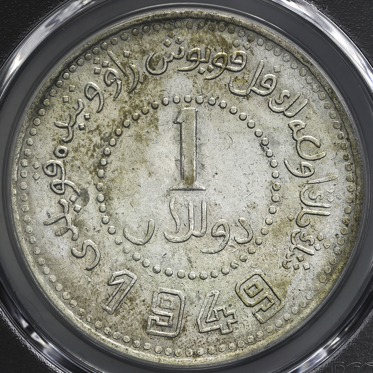 新疆省 Sinkiang 一圆(Dollar) 民国38年(1949) PCGS-AU Detail“Cleaned“ 洗浄 EF。KM-Y46.5 L&M-843 ”一九四九” Ⓡ,PCGS-AU Detail“Cleaned“