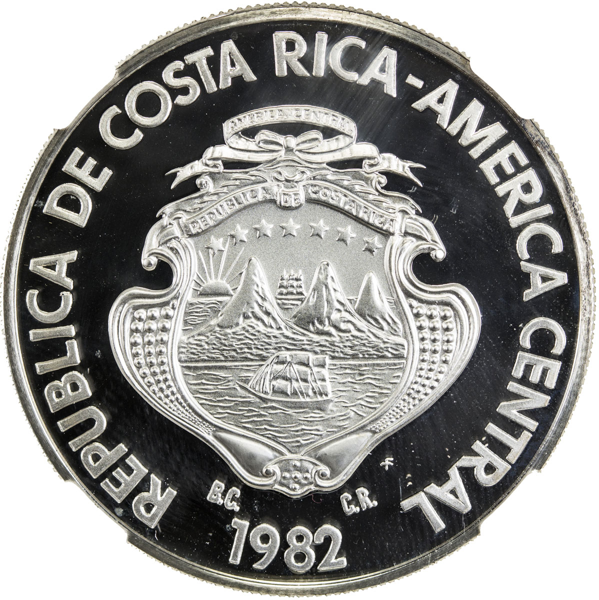 World Coins - The Americas,COSTA RICA: AR 250 colones, 1982, KM-212, country arms , head of a jaguar, struck at the Franklin Mint, mintage of 1109 pieces, NGC graded PF69 UC, S.