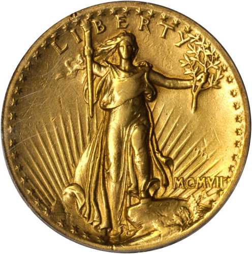 MCMVII (1907) Saint-Gaudens Double Eagle. High Relief. Flat Rim. Unc Details--Obverse Cleaned (NGC).,With a razor sharp strike, vivid medium gold patina and an overall smooth appearance, this coin is sure to catch the eye of budget minded gold enthusiasts ...