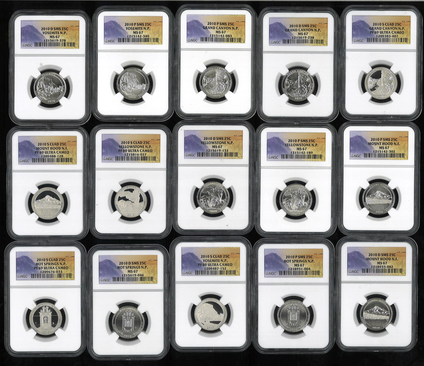 USA アメリカ合众国 25Cents 2010各PDS 5种 ビューティフ儿・クォーター KM-469~473 Lot of 15pcs 计15种组 NGC-MS67(×10) NGC-PF69(×5) 返品不可 要下见 Sold as is No returns UNC&Proof。,NGC-MS67(×10) NGC-PF69(×5) 返品不可 要下见 Sold as is No returns ...