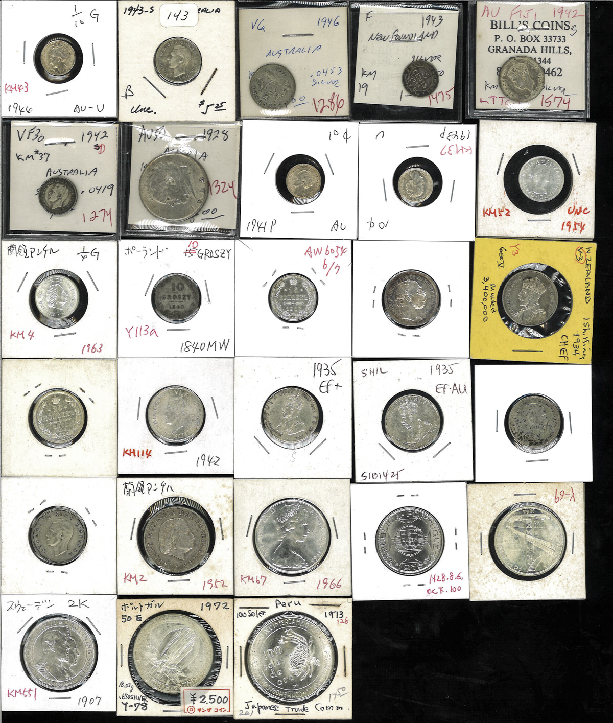 Lot of world coins 世界各国コイン 银货10枚、陶货1枚 返品不可 要下见 Sold as is No returns F~EF+。ト儿コ100Kurush 1934、ベ儿ギー2Francs1904、ハイデラバードRupee1912、オランダ2-1/2Gulden1931、オーストラリアFlorin1927、モロッコ20Francs、エクアド儿5Sucres1943 ...