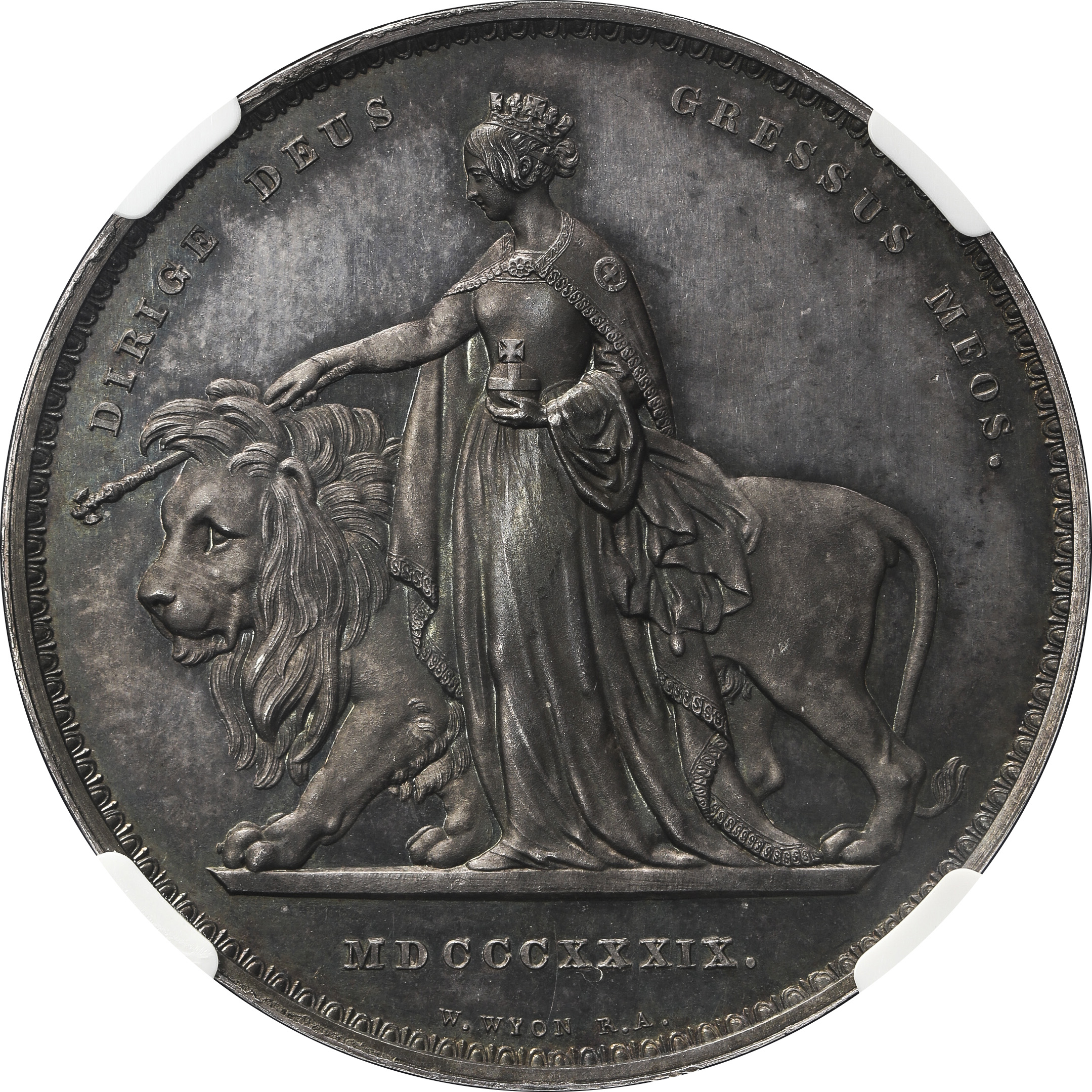 GREAT BRITAIN Victoria ヴィクトリア(1837~1901) Pattern 5Pounds in Silver (Pattern Crown?) 1839 NGC-PF64 Proof -FDC。
