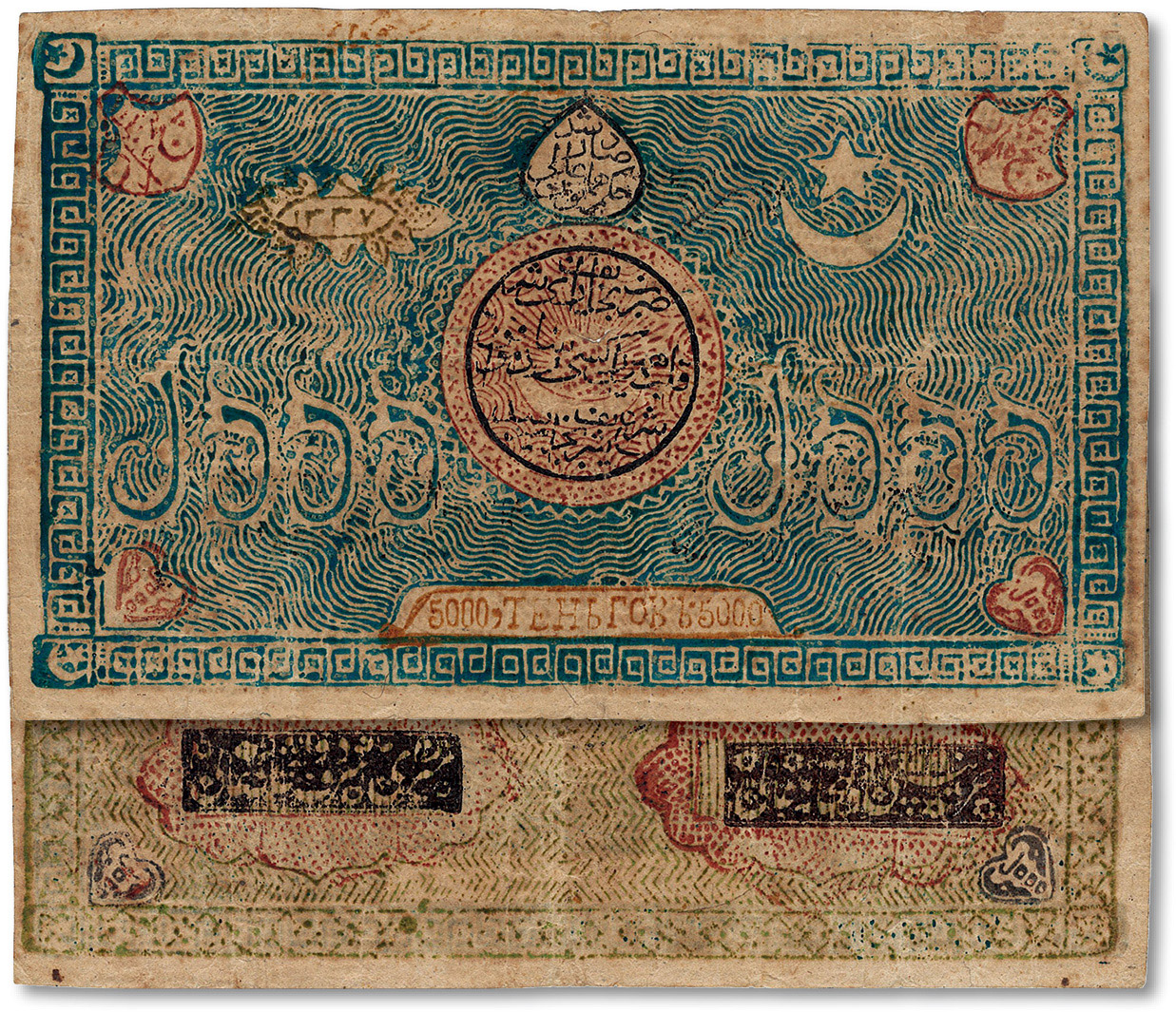 新疆东突厥斯坦共和国纸币5000元,罕见,七五成新(注:东突厥斯坦共和国,又称新疆伊犁、塔城、阿尔泰三区革命政府,成立于1944年,属倾向苏联之民族叛乱政权,至1949年9月新疆和平解放时解体。) ...