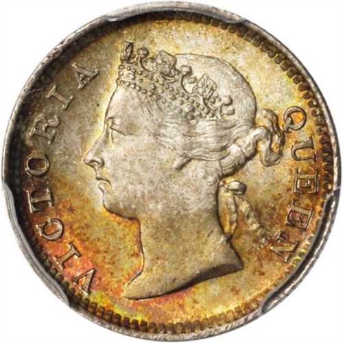 香港5仙4枚一组,包括1893, 1895, 1897及1899年, 其中1893及95年评PCGS MS65,1897及99年则评NGC MS65, 均获高评分. 香港及澳门钱币. Hong Kong, group of 4x silver 5 cents, 1893, 1895, 1897 and 1899,the 1893 and 1895 graded PCGS MS65 and the 1897 and 1899 graded N ...