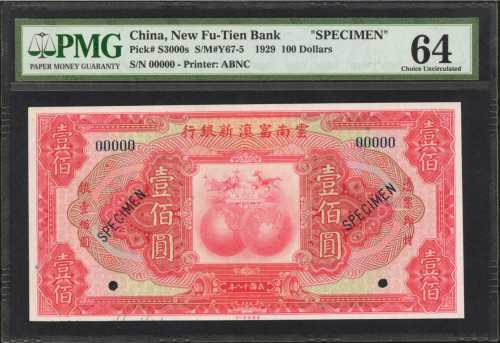 关于民国十八年云南富滇新银行一佰圆。样票。的评论
