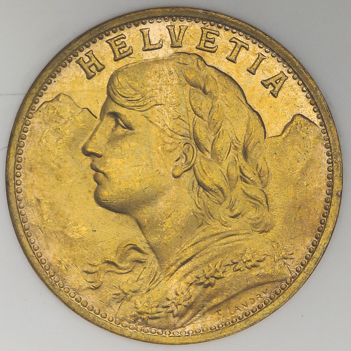 SWITZERLAND Confederation スイス连邦 20Francs 1935LB NGC-MS66 -FDC。Fr-499 KM-35.1 ア儿プス之少女 LBは1945年から47年に制造された,NGC-MS66