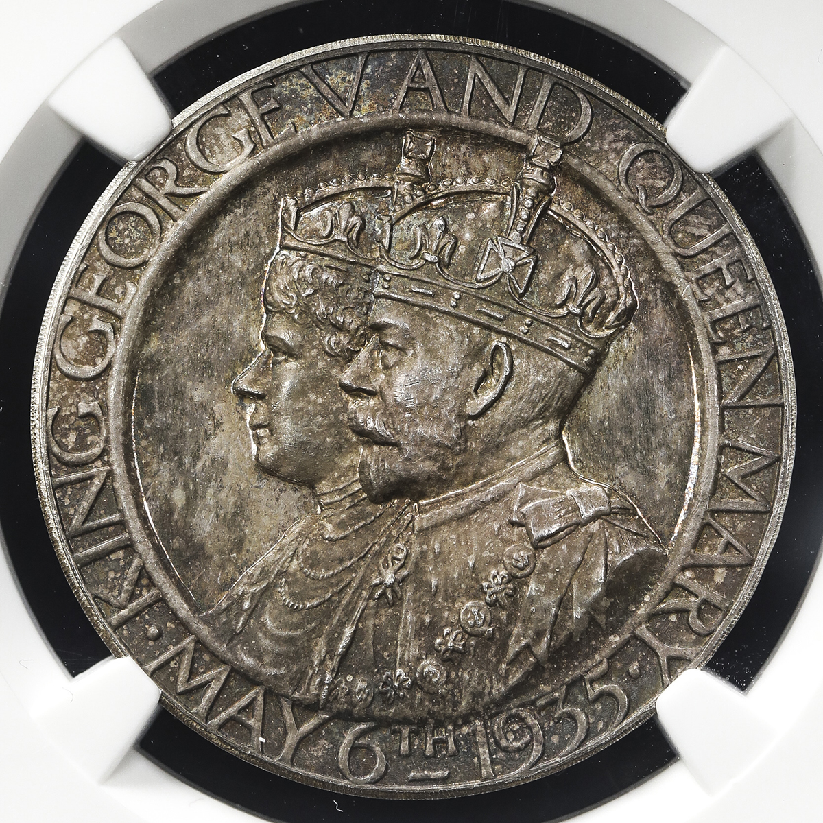GREAT BRITAIN George V ジョージ5世(1910~36) AR Medal 1935 NGC-MS64 UNC。BHM-4256 治世25周年 ジョージ5世之メアリ―,NGC-MS64