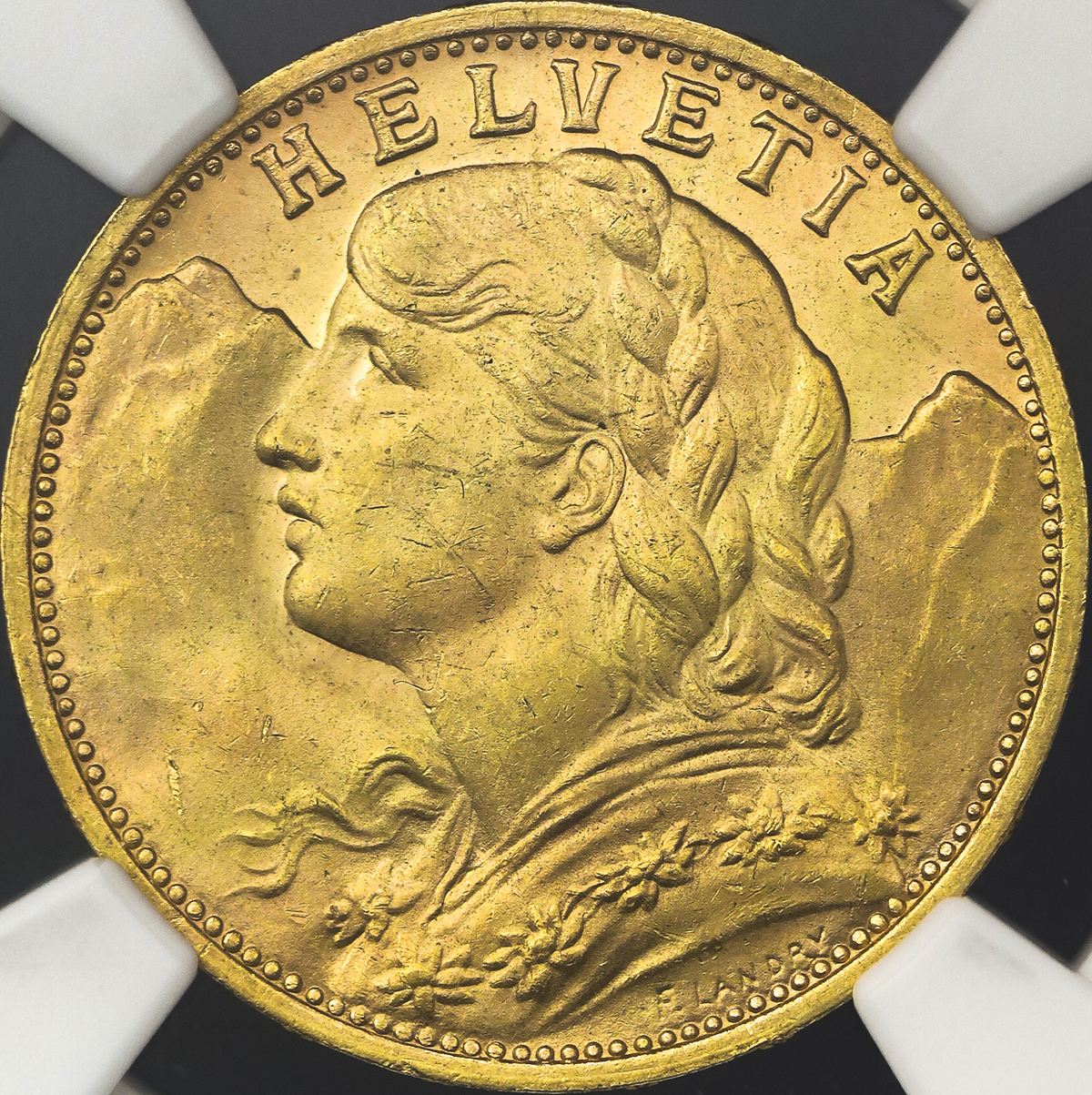 SWITZERLAND Confederation スイス连邦 20Francs 1935LB NGC-MS66 -FDC。Fr-499 KM-35.1 ア儿プス之少女 22Stars on Edge LBは1945年から47年に制造された,NGC-MS66