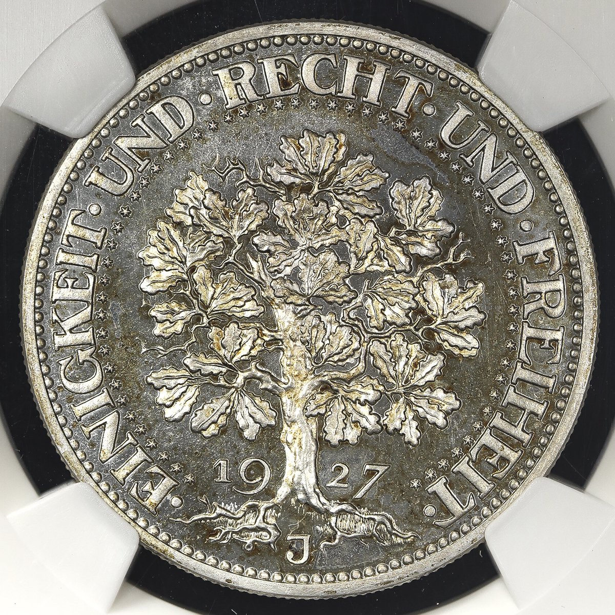 GERMANY Weimar Rep ワイマー儿共和国 5Reichsmark 1927F NGC-MS64 トーンUNC+。Dav-968 KM-55 チュビンゲン大学450周年 シュツットガ儿ト トーンUNC+