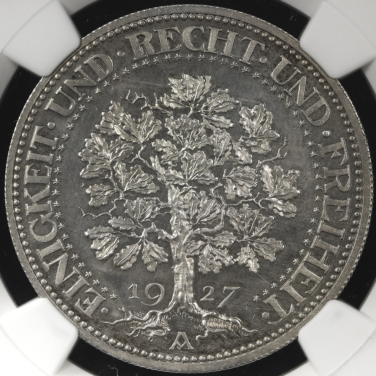 GERMANY Weimar Rep ワイマー儿共和国 5Reichsmark 1927A NGC-PF63 Proof UNC。Dav-966 KM-56 樫の木 ベ儿リン Proof UNC