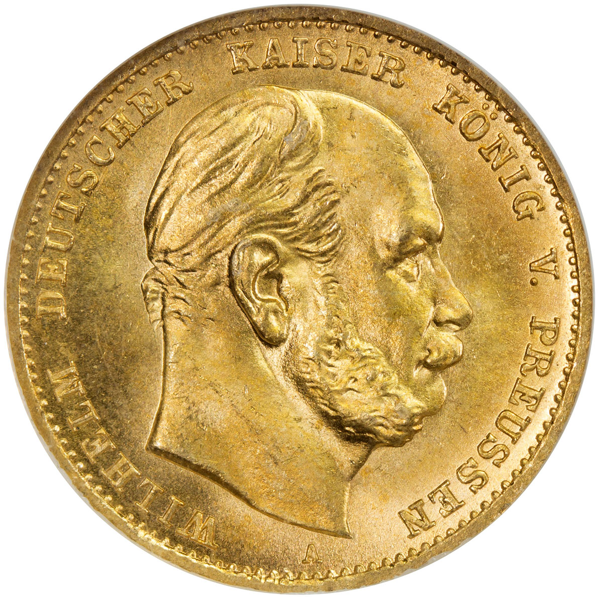 World Coins - Europe,PRUSSIA: Wilhelm I, 1871-1888, AV 10 mark, 1872-A, KM-504, NGC graded MS67.
