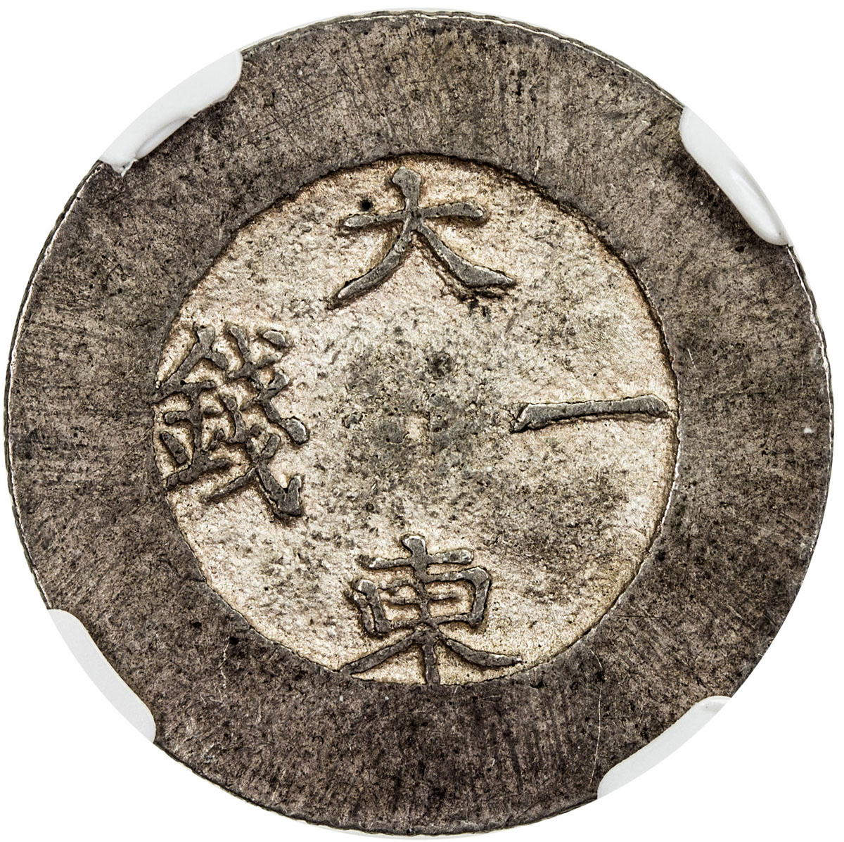 World Coins - Asia & Middle-East,KOREA: Yi Hyong, 1864-1897, AR chon, ND (1882-83), KM-1081, Tae Dong Treasury mint, black cloisonne enameled center circle, with about 95% of the enamel remaining, NGC graded MS62.