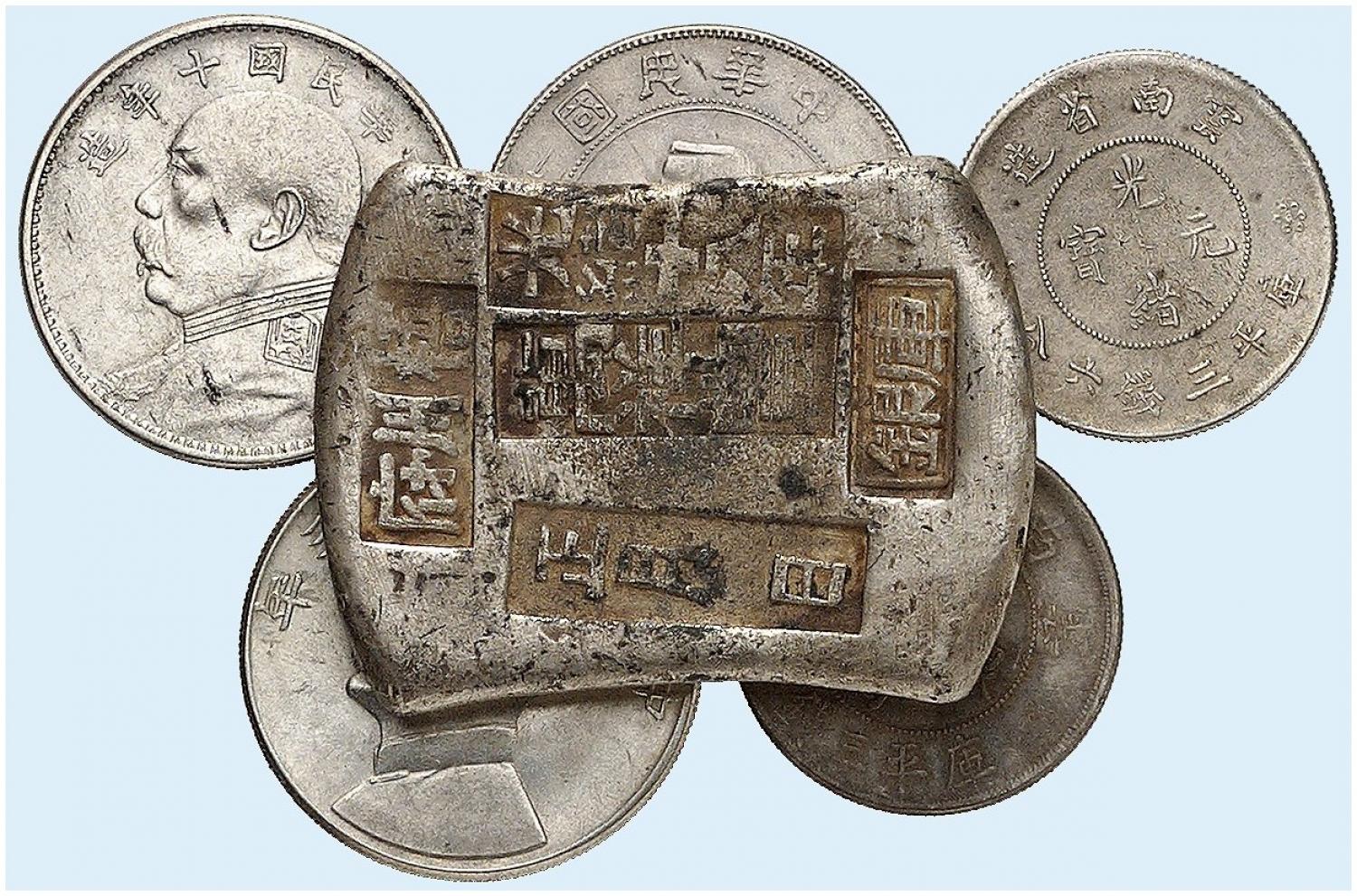Lots bis 1949 36 Stuck. U.a. Xian Feng 10 Cash, ein Amulett, Dollars von Hupeh, Yunnan, Szechuan, 4 X 1/2 Dollar Yunnan, Silber-Kleinmunzen von Kiangnan, Kwangtung und der Republik, einige Silberpragungen Tibet. Besichtigen. Wenige ohne Obligo. untersch. ...