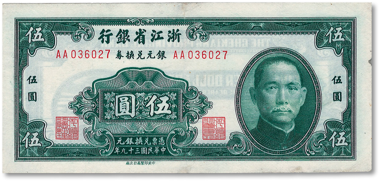 1950年新疆省银行10元5枚一组,有水渍及黄,VG至VF品相. 中国纸币 (1949前). Sinkiang Provincial Bank, lot of 5x 10 yuan, 1950, serial number IE 028328, KI 419271, KM 100203, KG 414852, KI 084308, (Pick S1806), some with water stains and toning, generally about ...
