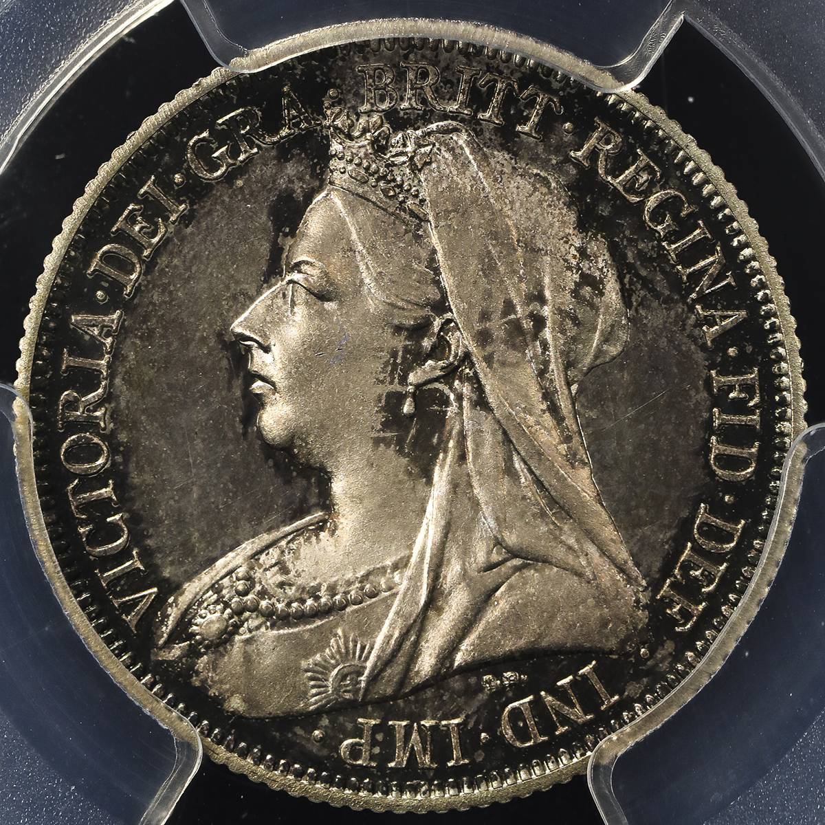 GREAT BRITAIN Victoria ヴィクトリア(1837~1901) Crown 1893LVI PCGS-PR63 トーン Proof UNC。Dav-108 S-3937 KM-783 ESC-304 オー儿ドヘッド 制造1312枚,PCGS-PR63