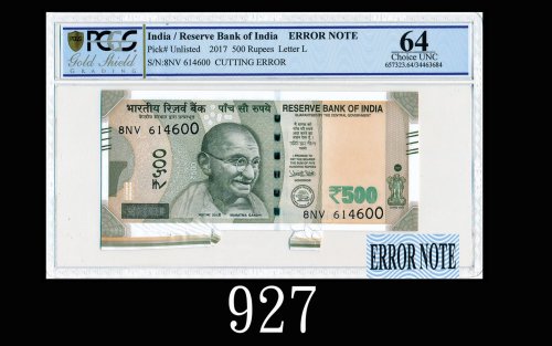 关于2017年印度储备银行500卢比错体票2017 Reserve Bank of India 500 Rupees, s/n 8NV 614600, cutting error. PCGS 64 Cho的评论