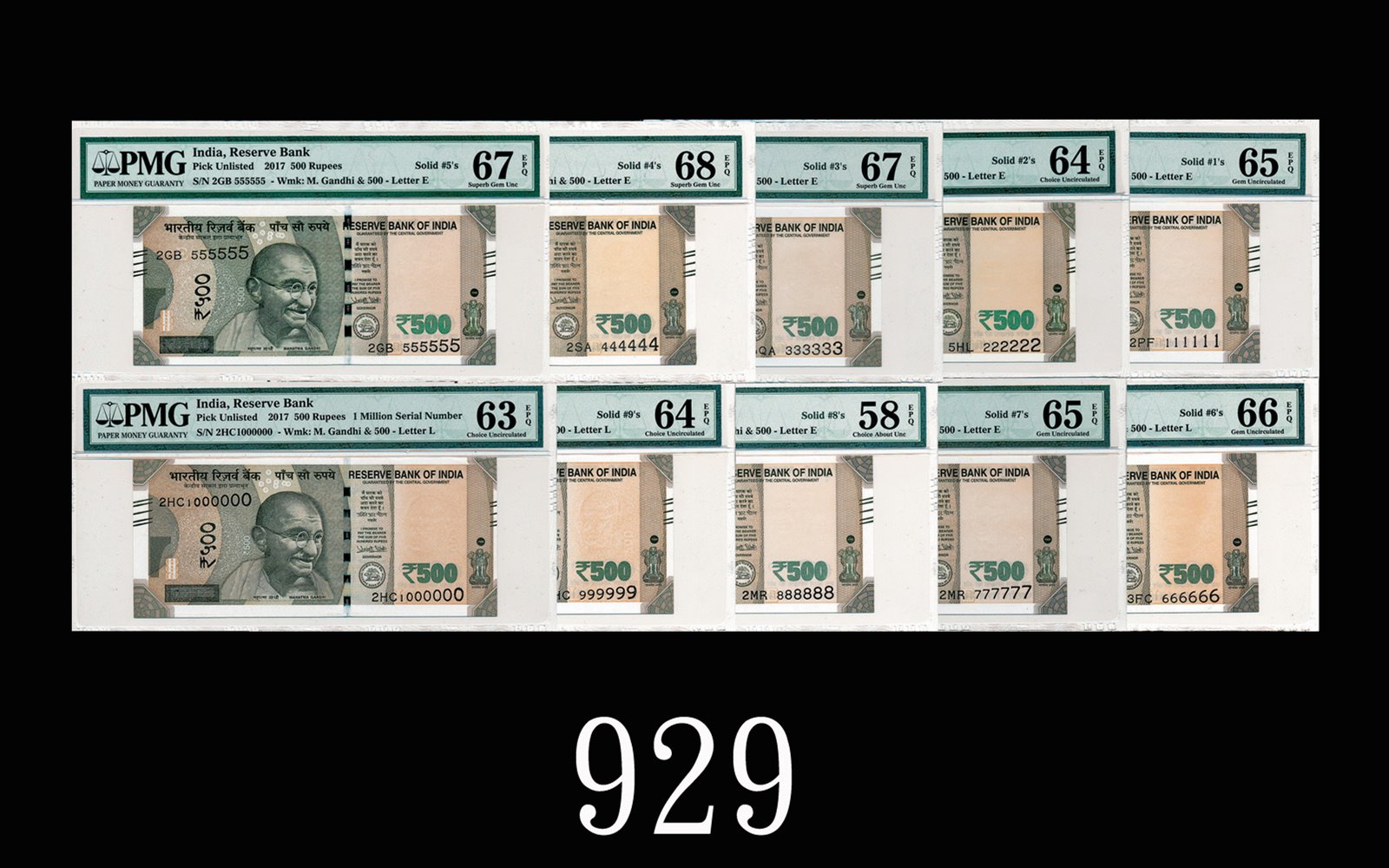 关于2017年印度储备银行500卢比,不同字冠100000、200000‧‧‧900000号一组九枚评级品2017 Reserve Bank of India 500 Rupees, s/ns 10000的评论