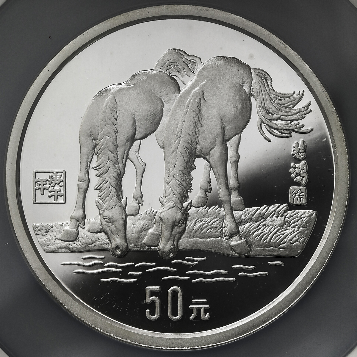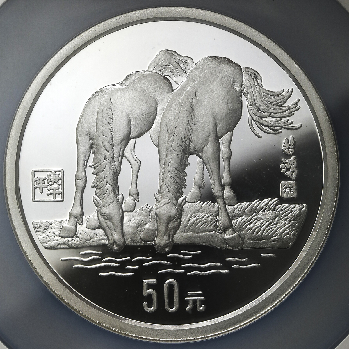 中华人民共和国 People‘s Republic of China 50元(Yuan) 1990 NGC-PF67 Ultra Cameo 保証书付 オリジナ儿ケース付 with original case Proof。KM-284 午年 5オンス(5Oz)银货 制造2000枚,NGC-PF67 Ultra Cameo 保証书付 オリジナ儿ケース付 with original case ...