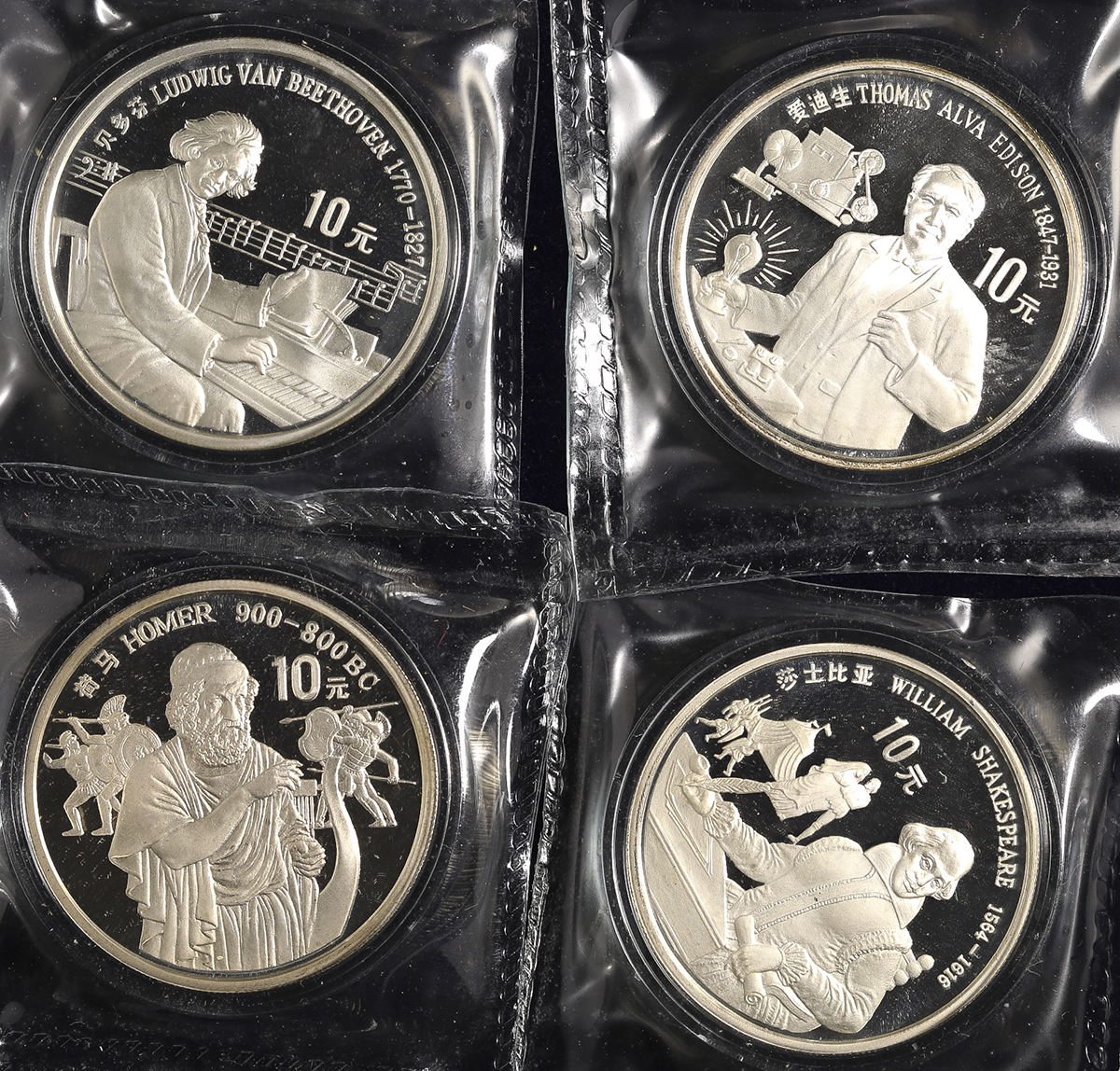 中华人民共和国 People‘s Republic of China Proof Set 1990 保証书付 オリジナ儿ケース付 with original case Prooof。KM-(305~308)世界文化名人记念币 第1组 プ儿ーフ银货4种セット,保証书付 オリジナ儿ケース付 with original case ...
