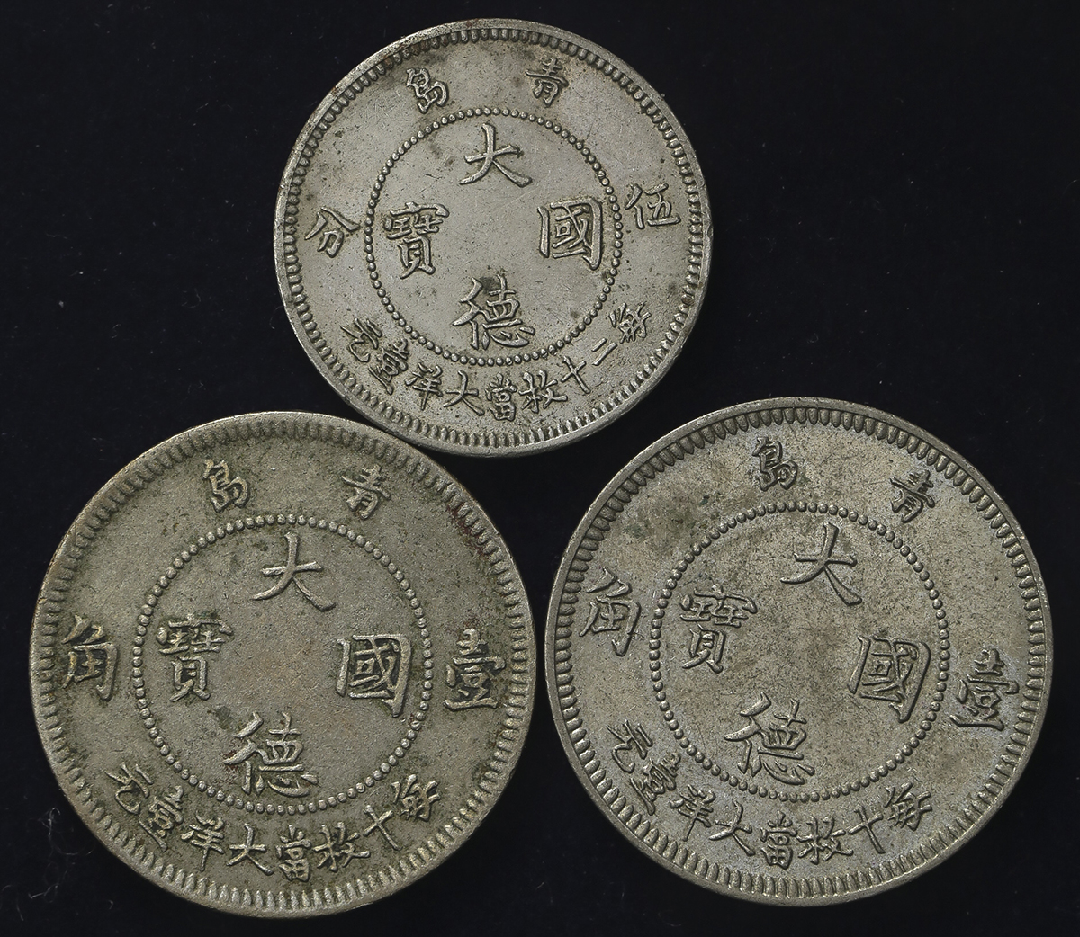 民国26年中央银行伍圆、1922年德国胶澳租借地纸钞75PF,两枚。九成新及边微黄未使用1937 The Central Bank of China $5 & 1922 Kiautschau 75 Pfennig, s/n 207459. AU & UNC with light foxing (2pcs)