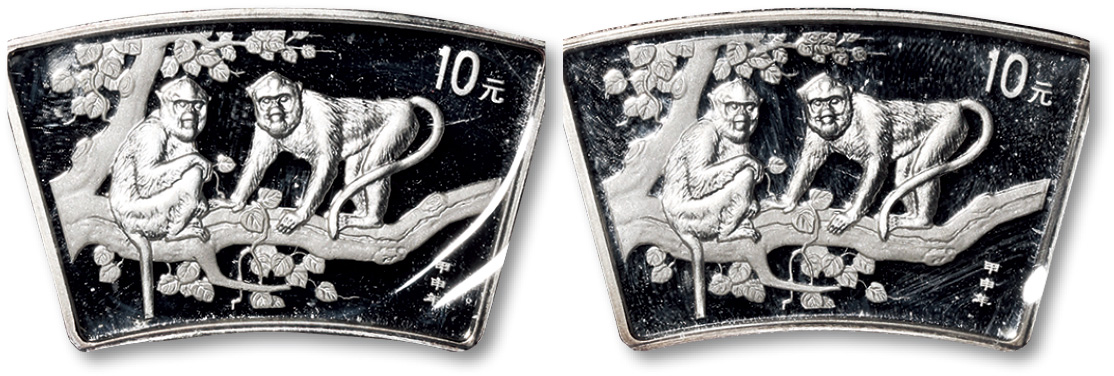 2004年50元,生肖系列,猴年。长方形,发行量仅1,888枚。镜面底板,霜面图文,光彩亮丽。NGC PROOF-68 ULTRA CAMEO.CHINA. 50 Yuan, 2004. Lunar Series, Year of the Monkey. NGC PROOF-68 ULTRA CAMEO.KM-1551. Rectangle shape coin. From a mintage of only 1,888 pieces. ...