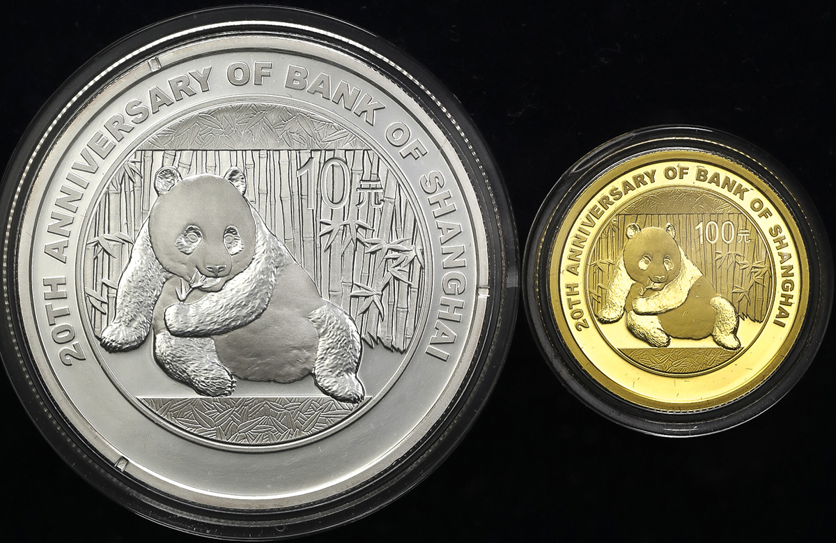 中华人民共和国 People‘s Republic of China Proof Set 2015 鑑定証书付(No16474)オリジナ儿ケース入り with original case Proof。上海银行成立20周年熊猫加字记念金银币 パンダ1/4オンス(1/4Oz)金货 1オンス(1Oz) 银货,鑑定証书付(No16474)オリジナ儿ケース入り with orig ...