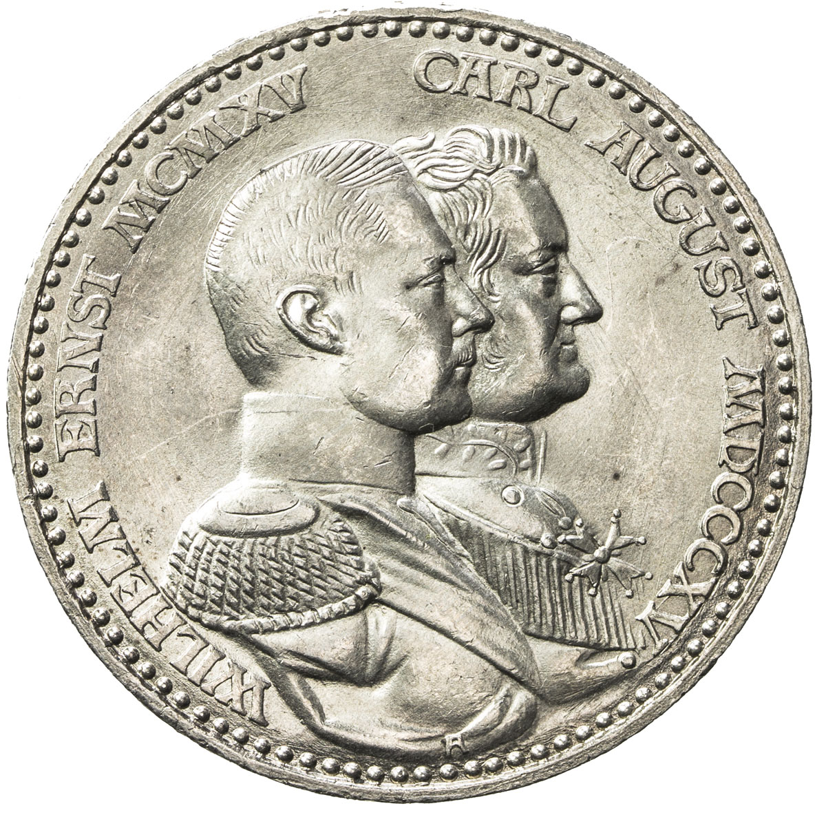 World Coins - Europe,SAXE-WEIMAR-EISENACH: Wilhelm Ernst, 1901-1918, AR 3 mark, 1915-A, KM-222, Y-177, Centenary of Grand Duchy, nearly gem, Choice Unc.