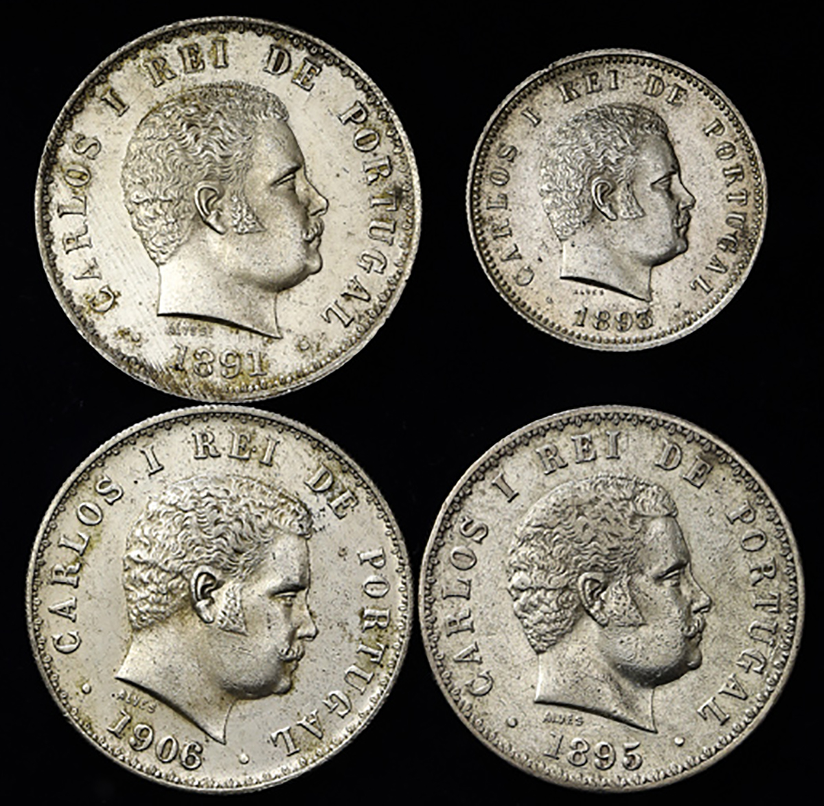 PORTUGAL ポ儿トガ儿 500Reis1891,1895&1906、200Reis1897 VF+~EF+。KM-534 KM-535 カ儿ロス1世
