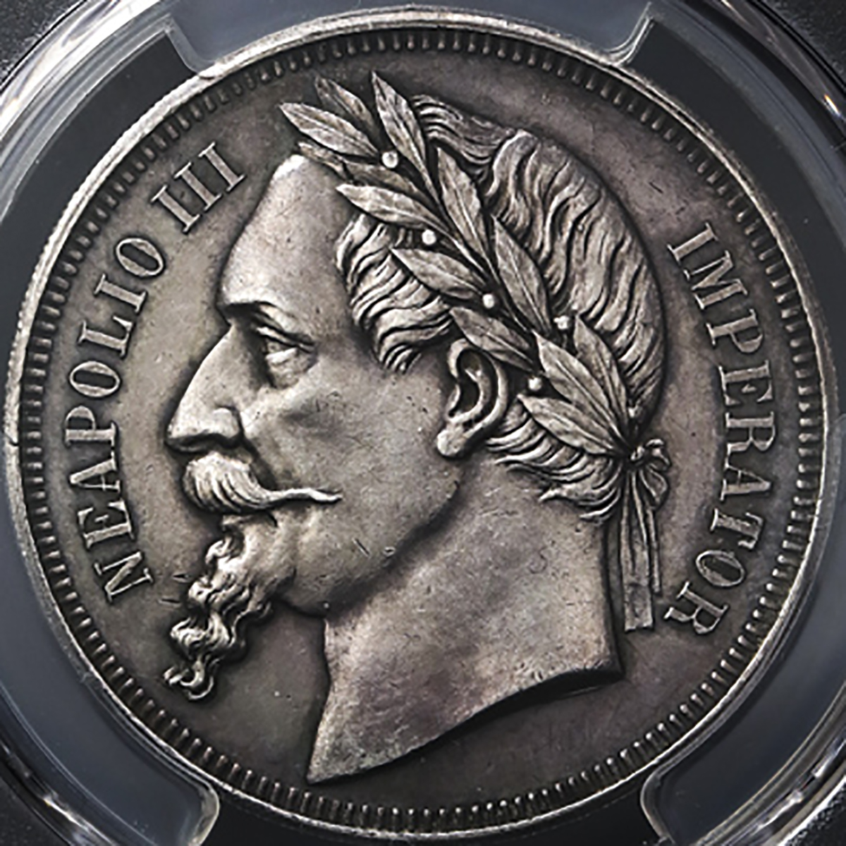 FRANCE Napoleon III ナポレオン3世(1852~70) Pattern (5Francs) 1870 PCGS-SP UNC Details“Mount Removed“ 12时マウント迹あり? 见本打ち AU。Maz-1749a Gad-739a 左向き月桂冠头像 试作(5フラン)银货,PCGS-SP UNC Details“Mount Removed“ ...