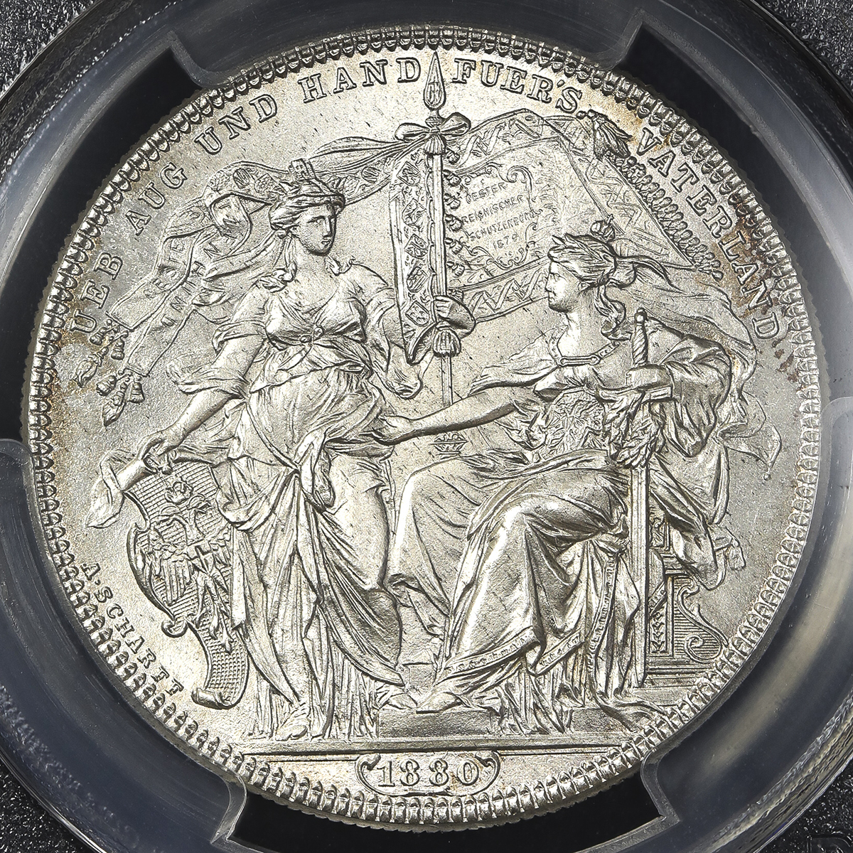 AUSTRIA Franz Josef I フランツ・ヨーゼフ1世(1848~1916) Medalic 2Florin 1880 PCGS-MS67 FDC。KM-X#M6 第1回オーストリア射击节,PCGS-MS67