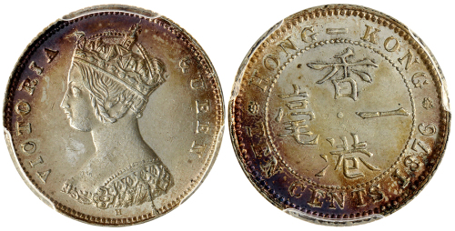 1876-H香港1毫,PCGS MS61,少见的希顿厂版别,品相好的难求. 香港及澳门钱币. Hong Kong, silver 10 cents, 1876-H, PCGS MS61, a scarce Heaton Mint issue and difficult in MS grade