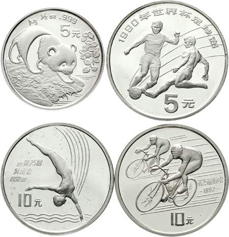 Lot 970.ÜBRIGES AUSLAND. CHINA -Volksrepublik seit 1911. Lot von 6 Stück: 200 Yuan 1982, Fußballweltmeister schaft in Spanie.,Starting price: 5000 EUR