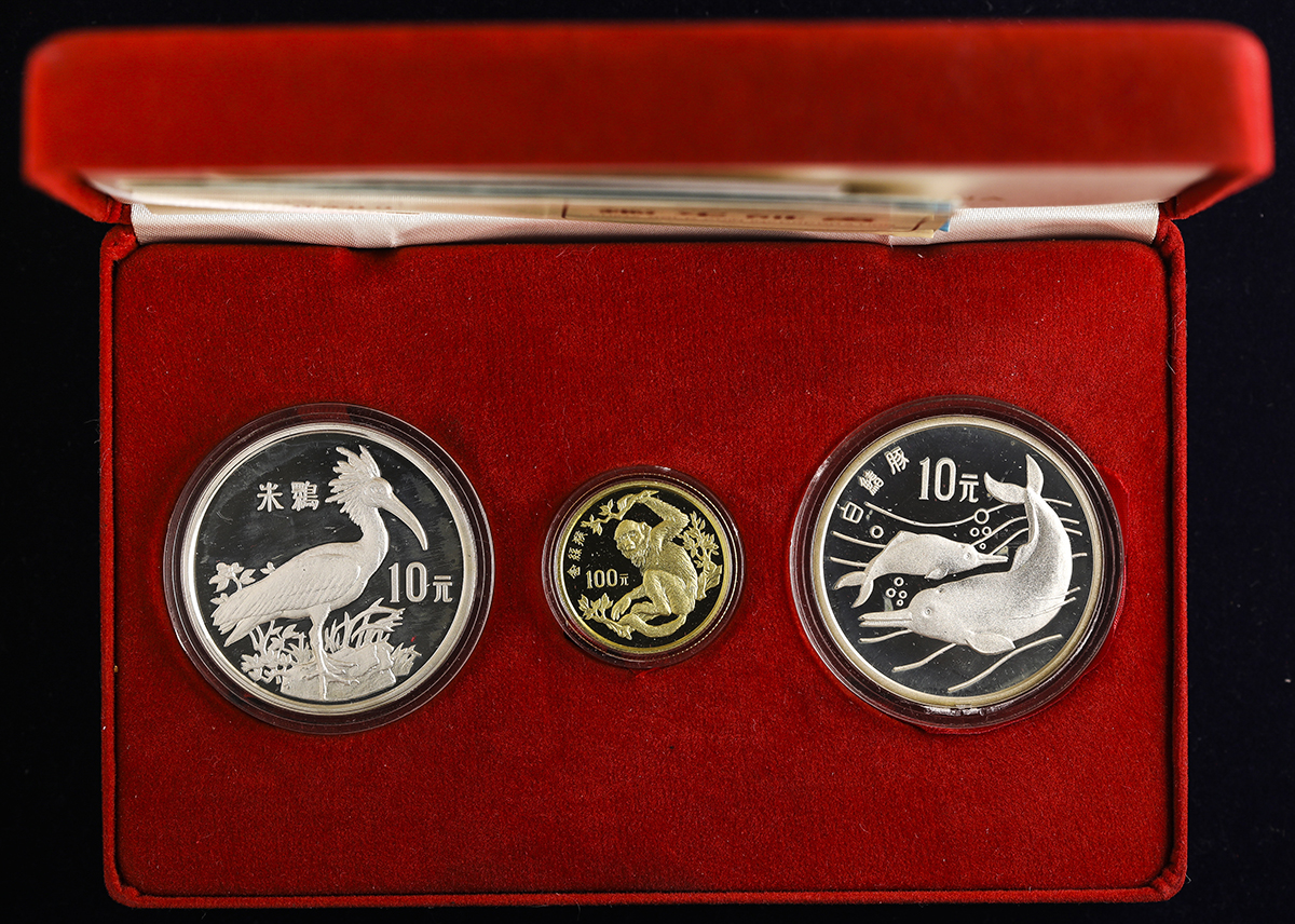 中华人民共和国 People‘s Republic of China Proof Set 1988 保証书付 オリジナ儿ケース付 with original case Proof。KM-212,213,214 珍奇动物记念币 朱鹭,金纟猿,扬子江イ儿カ 银货2种之金货1种の3种セット,保証书付 オリジナ儿ケース付 with original case ...