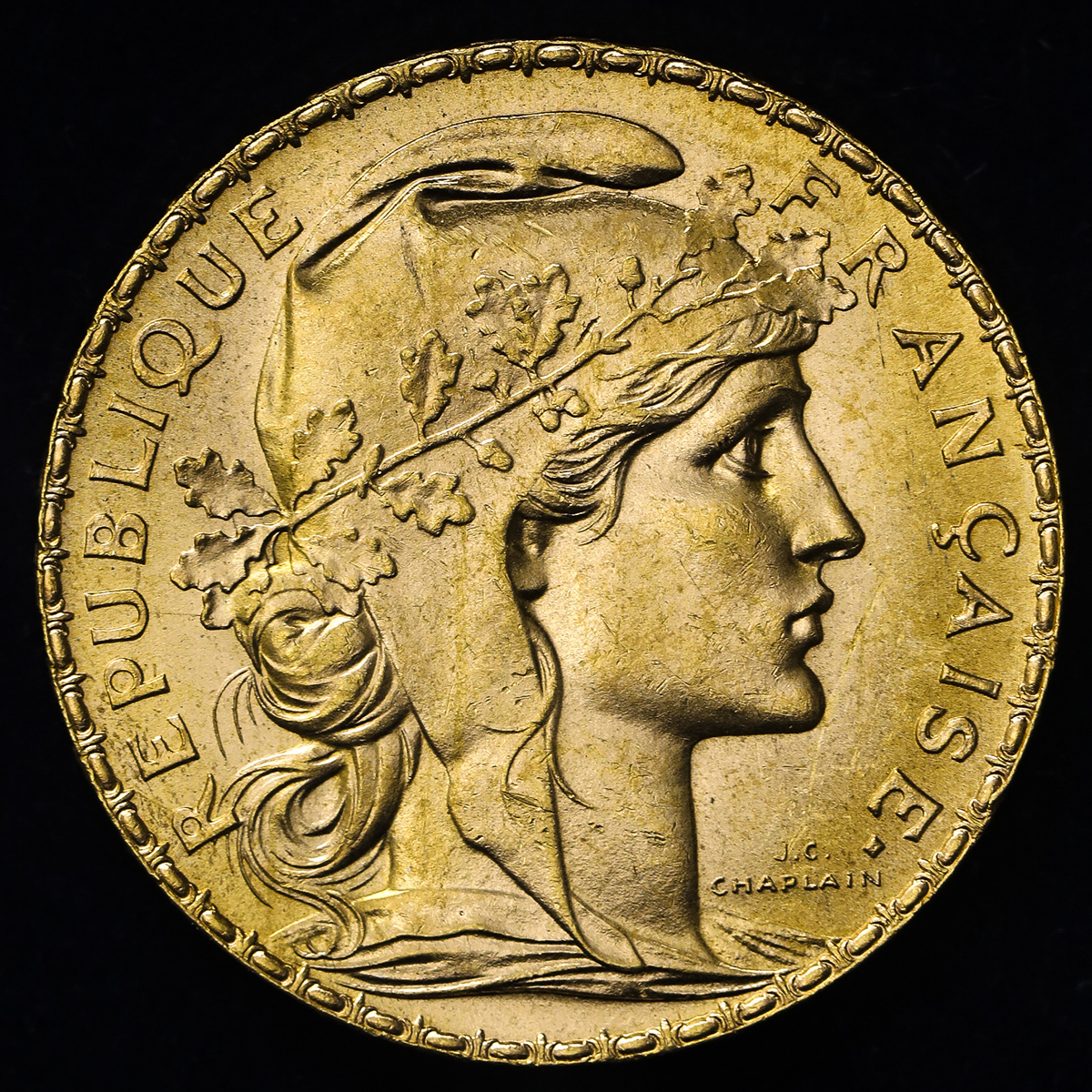 FRANCE 3rd Rep 第三共和政(1870~1940) 20Francs 1907A UNC。Fr-596a Gad-1064a KM-857 マリアンヌ パリ