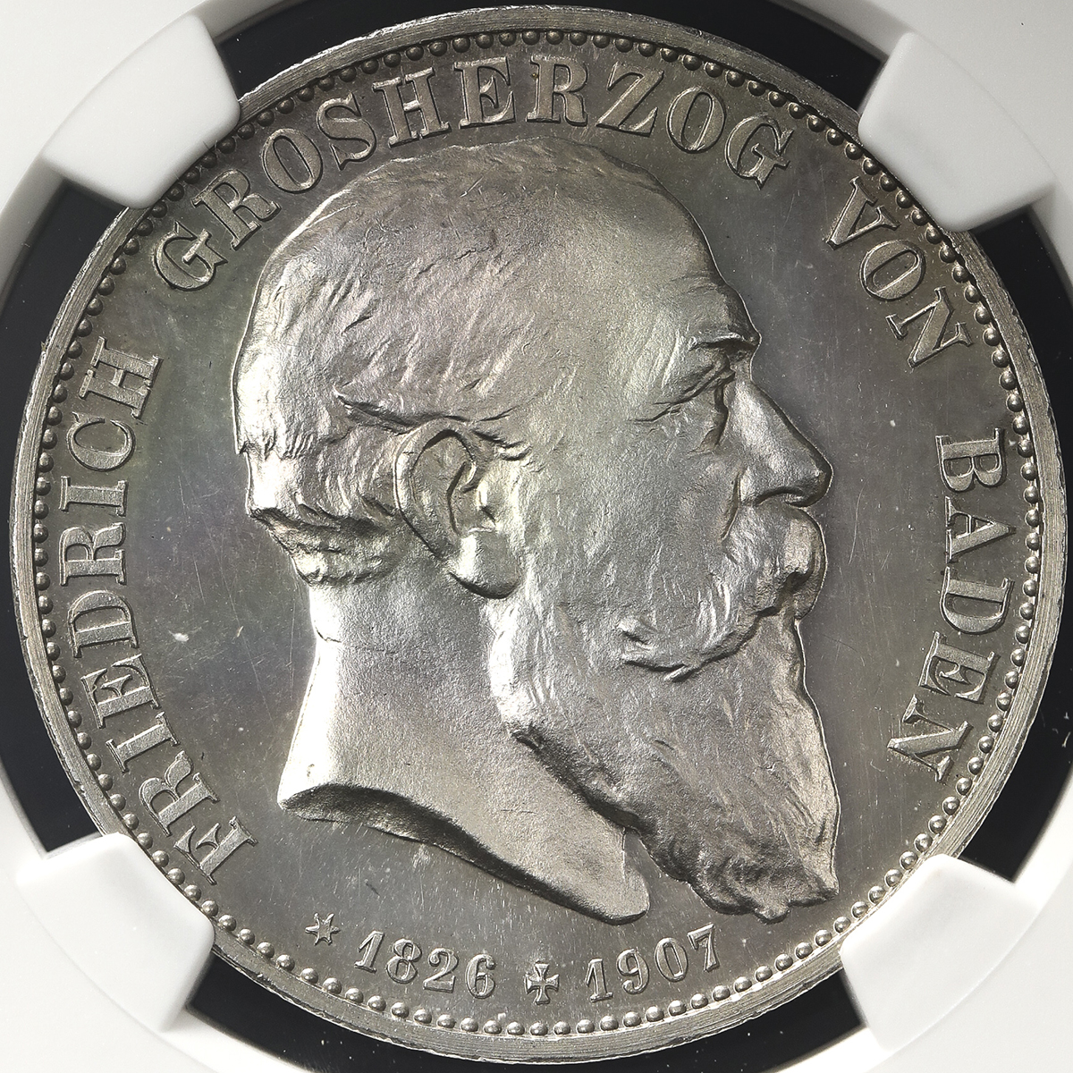 GERMANY Baden バーデン 5Mark 1907G NGC-PF63 Proof UNC。Dav-537 KM-279 フリードリヒ1世逝去 Proof UNC