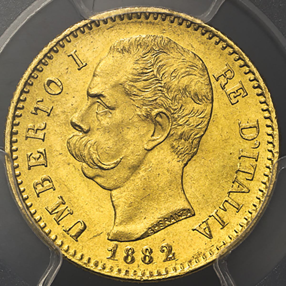 ITALY Kingdom 统一王国 20Lire 1882R PCGS-MS64 UNC+。Fr-21 KM-21 ウンベ儿ト1世 ローマ,PCGS-MS64