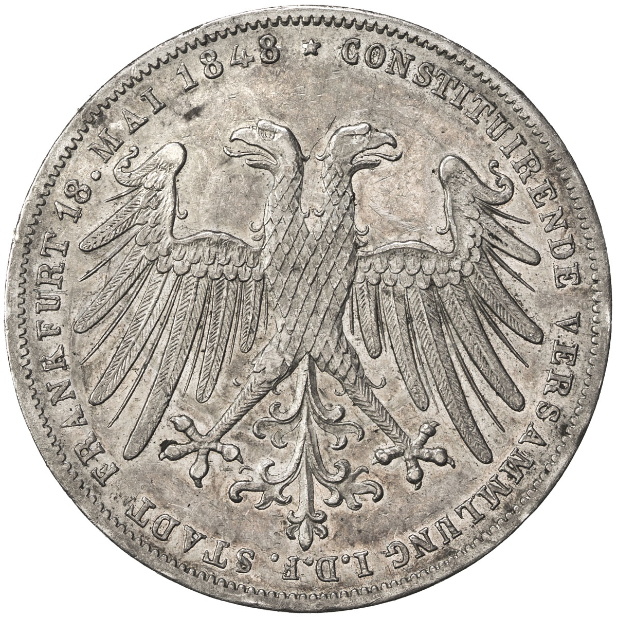 World Coins - Europe,FRANKFURT AM MAIN: AR 2 gulden (21.14g), 1848, KM-339, commemorating the nomination of Johann, Erzherzog (Grand Duke) of Austria as Regent over Germany, 29 June 1848, EF to AU, ex Don Erickson Collection.