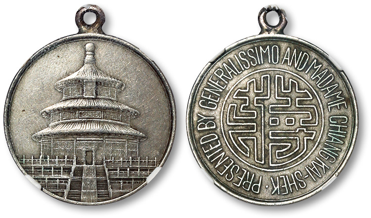 民国时期“蒋”字天坛图合金纪念章一枚,NGC MEDAL AU58