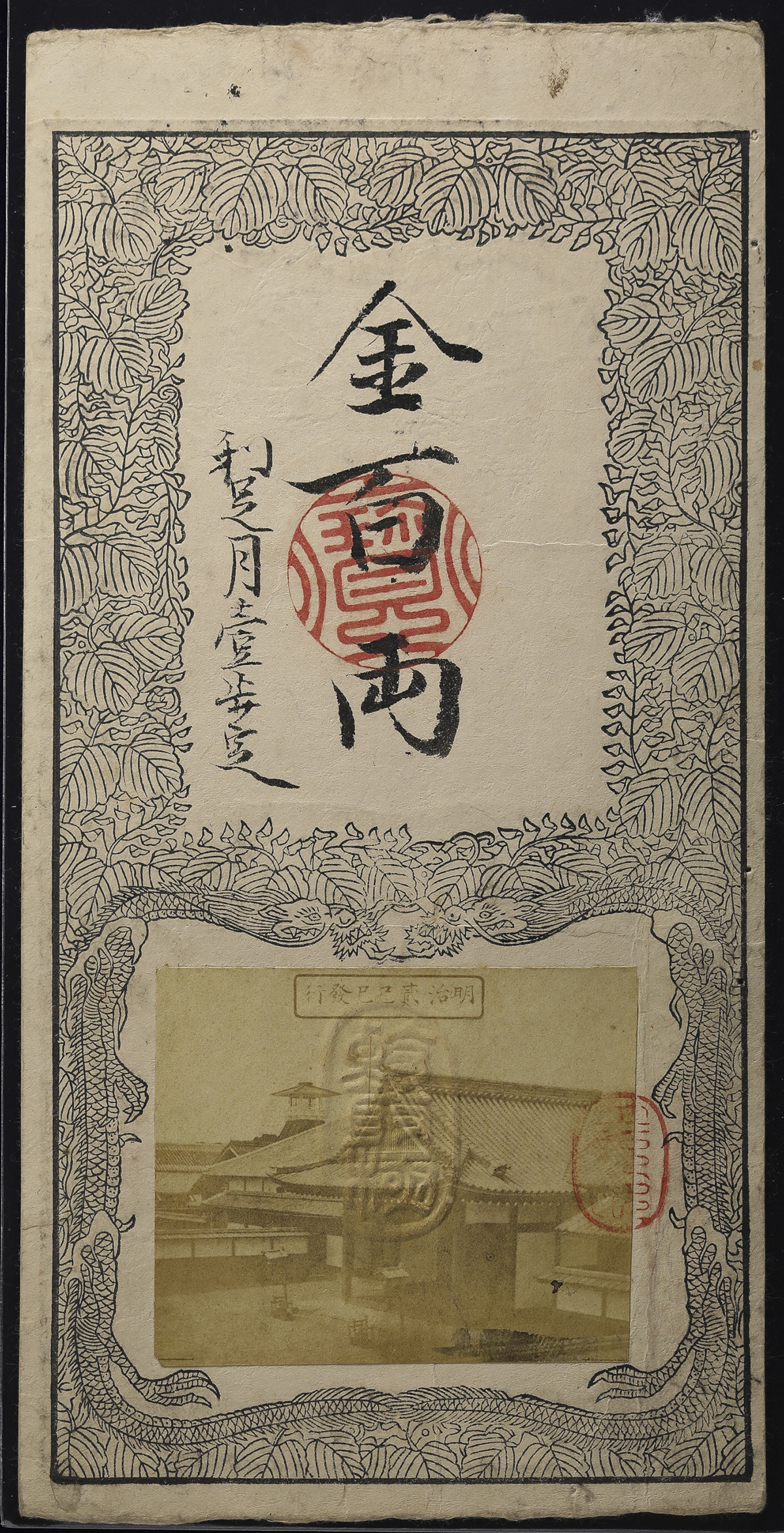 日本 大坂为替会社 金札 金百両 Osaka Exchange Banks Gold Notes 100Ryo 明治2年(1869) 日本古纸币図鑑付き (EF)极美品。JNDA10‐11type P-S202type 为替会社は1869年に殖産兴业政策推进を目的に通商司の监督下において设立された日本最初の株式会社。宫业振るわず国立银行 ...